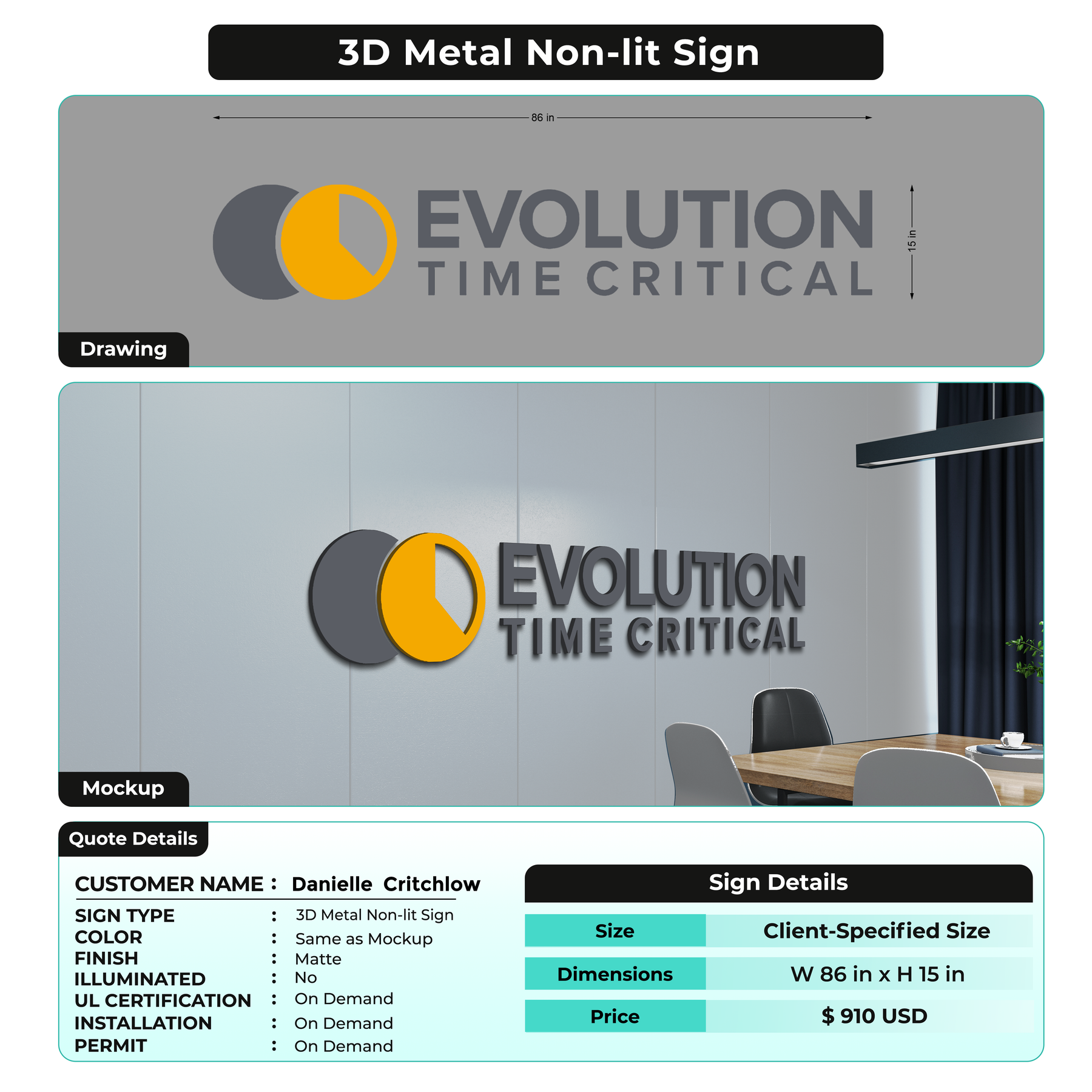 3D Metal Non-lit Sign For Danielle Critchlow-Regan