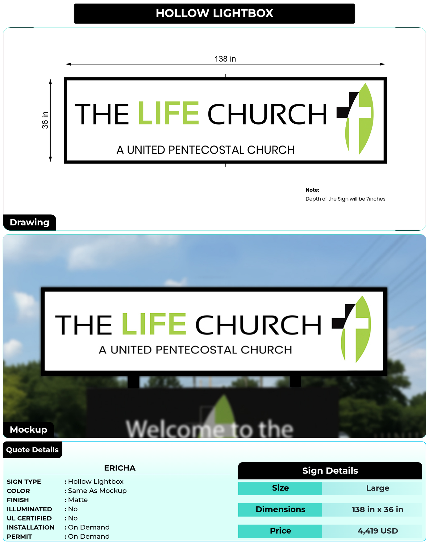 Total Price: $ 8,838 ( Hollow Lightbox )