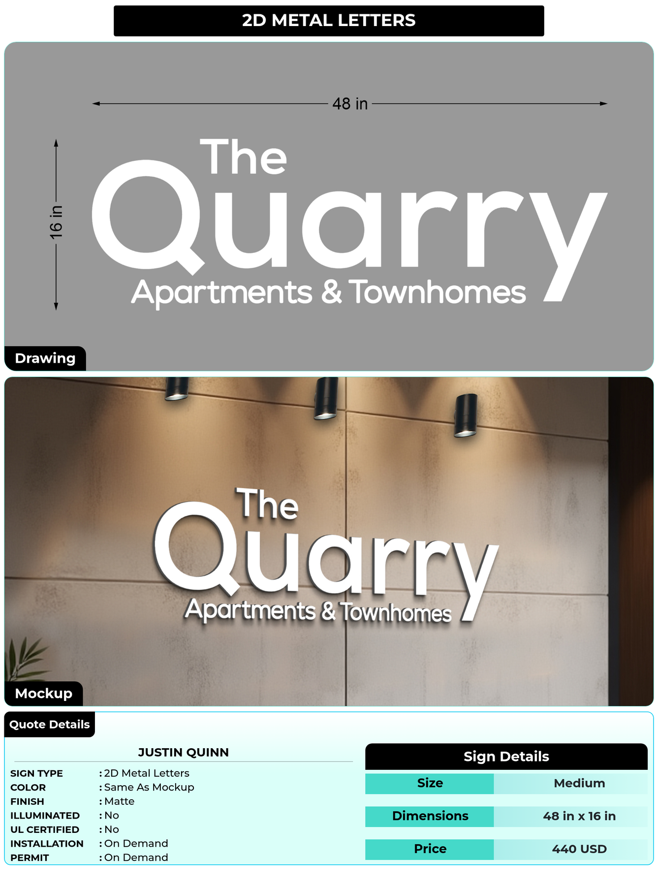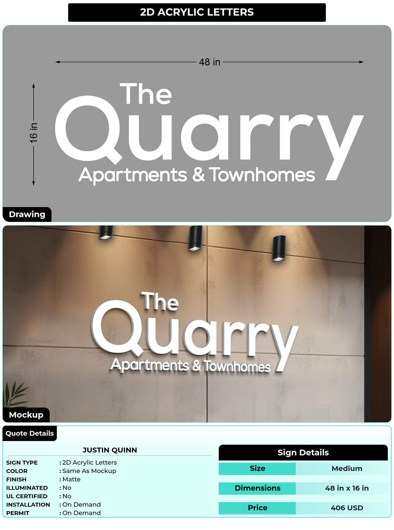 Eye-catching custom 3D sign for Justin Quinn