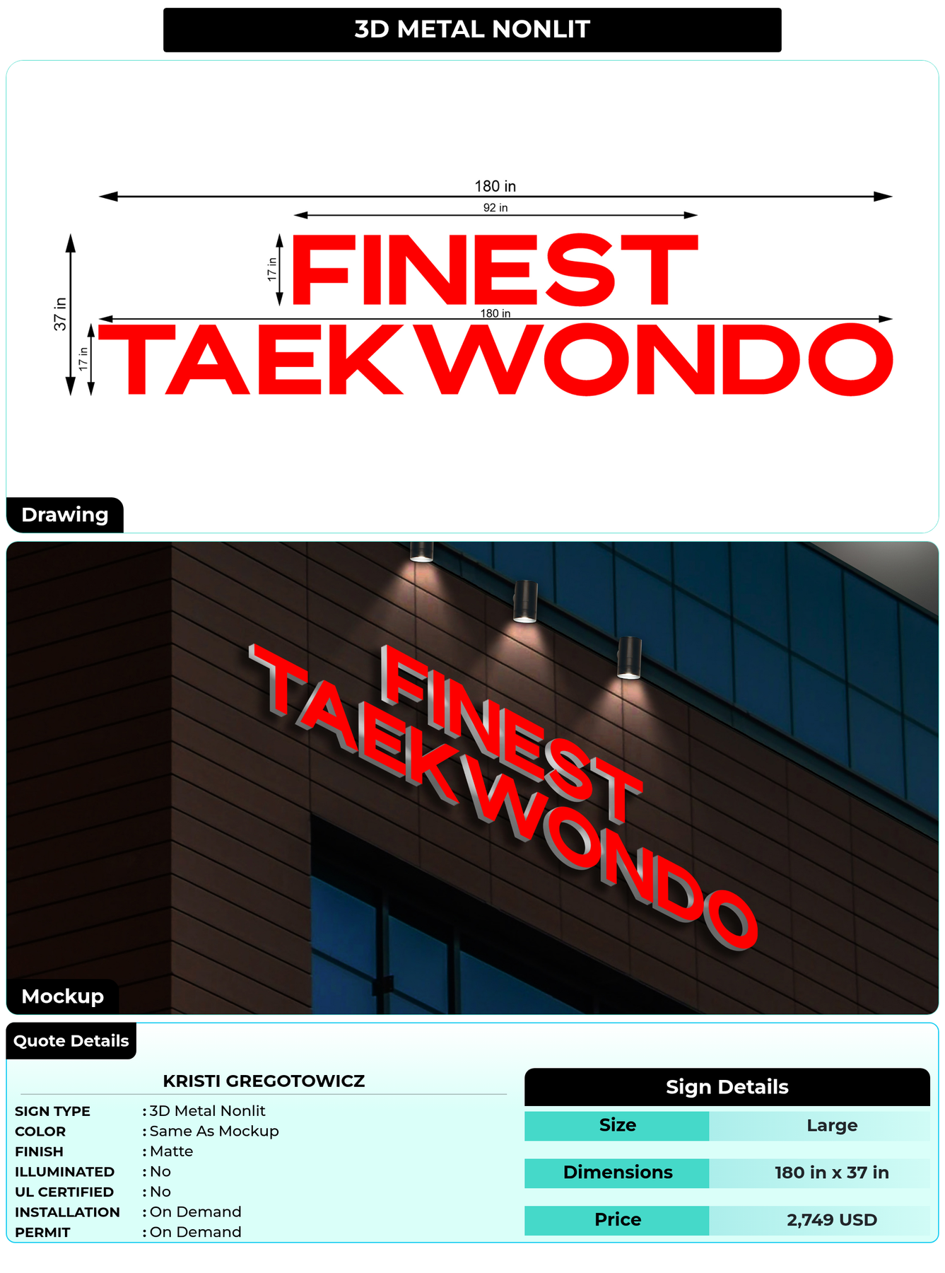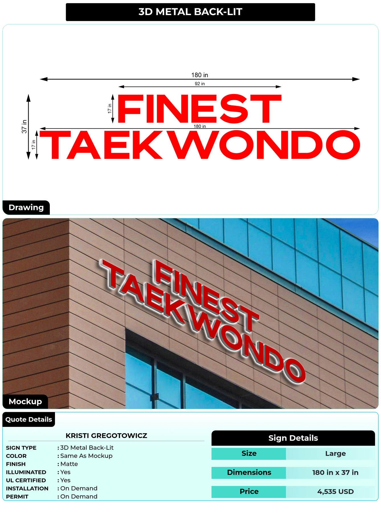 Eye-catching custom 3D sign for Kristi Gregotowicz