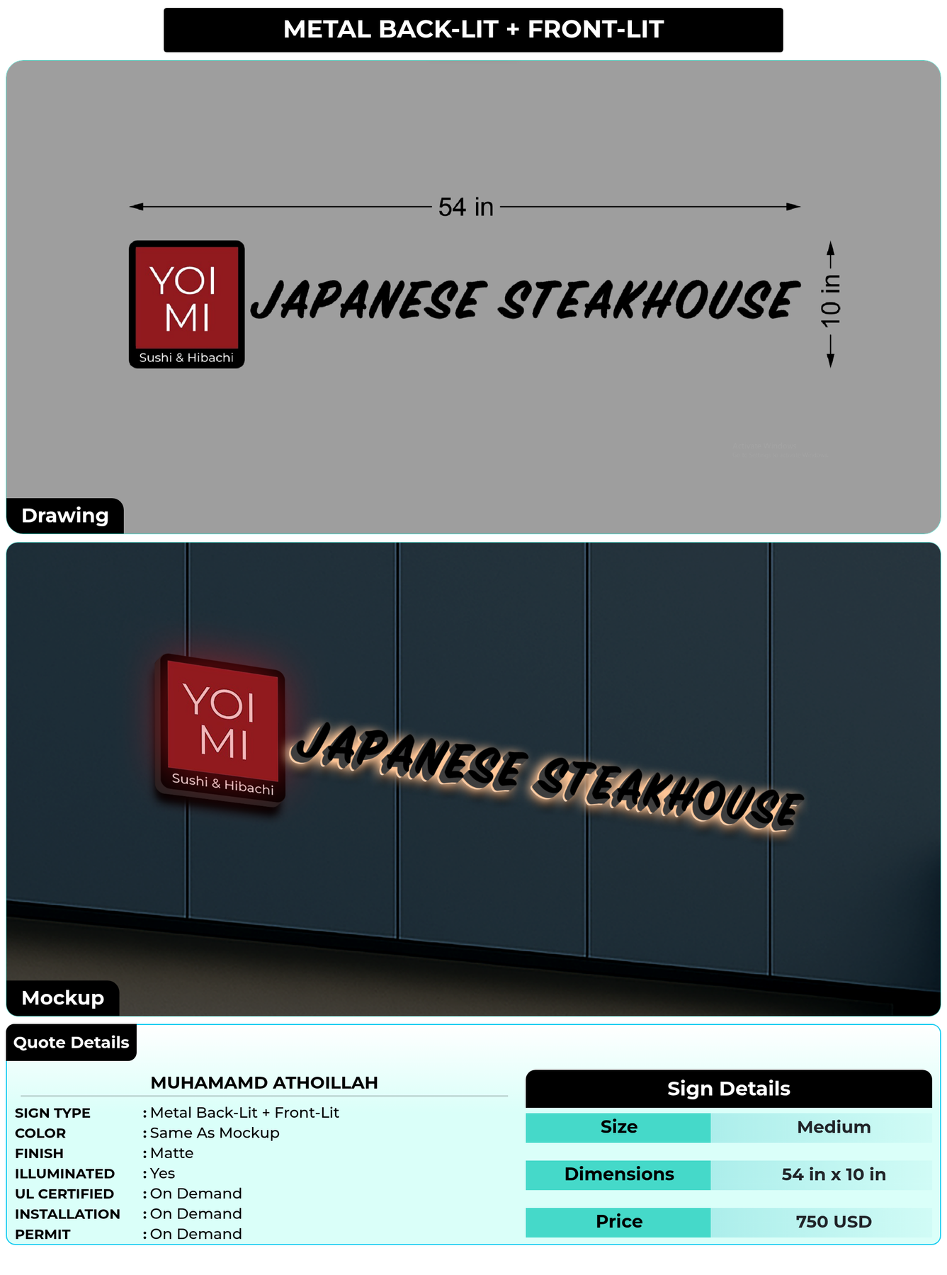 Eye-catching custom 3D sign for Muhamamd athoillah