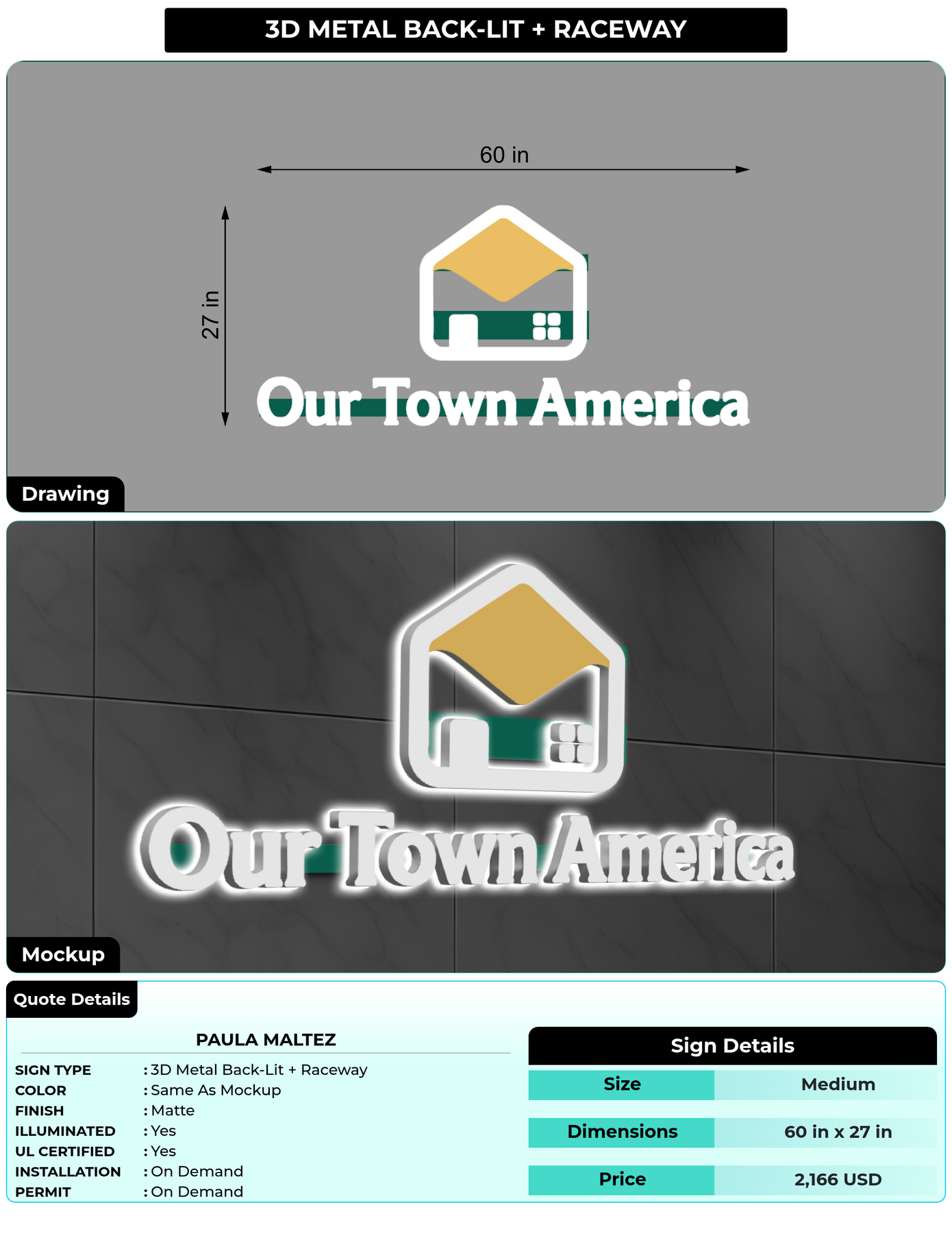 Half Payment Link For Total Price: $ 2,166 ( Metal Back-lit + Raceway )