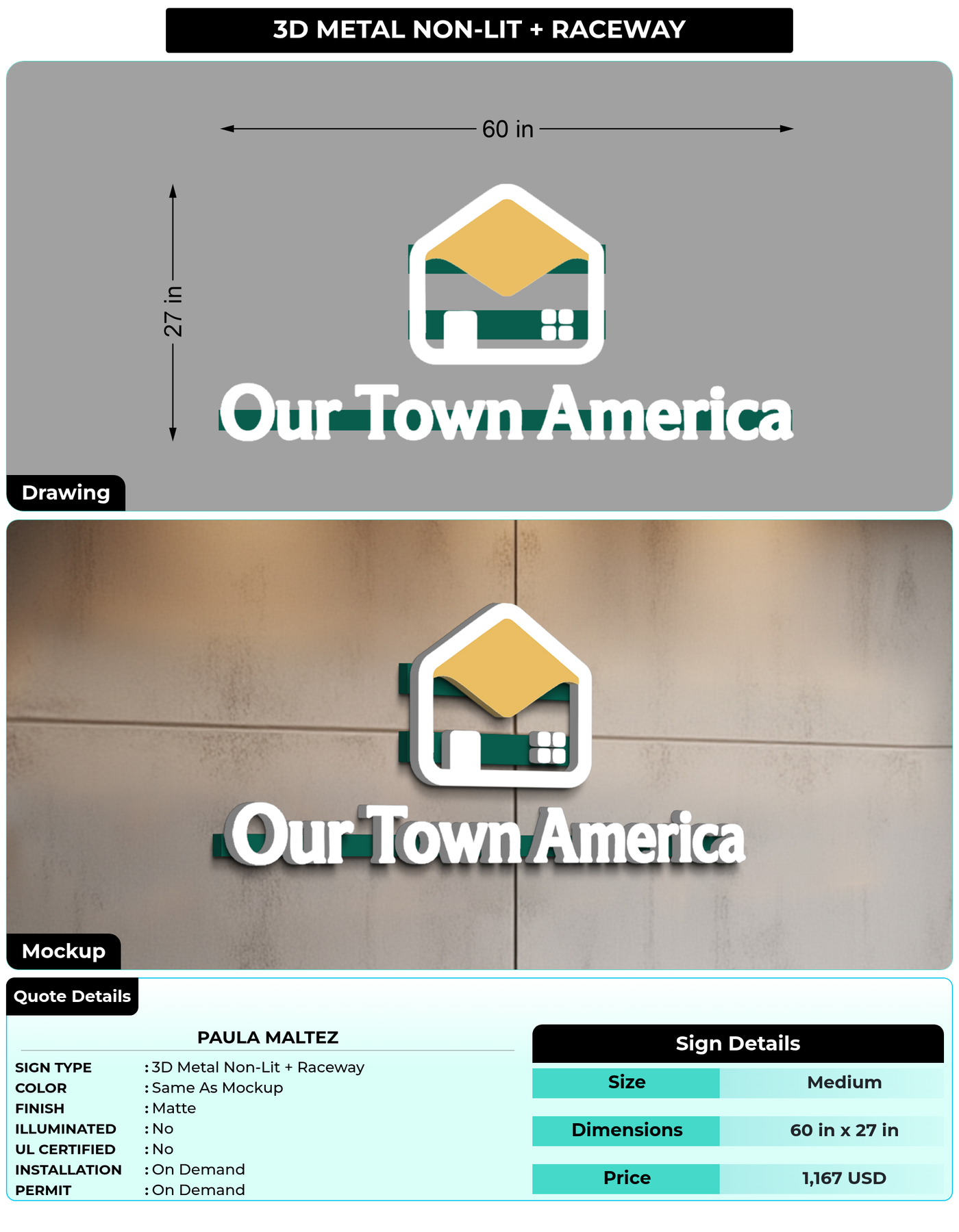 Half Payment Link For Total Price: $ 1,167 ( Metal Non-lit + Raceway )