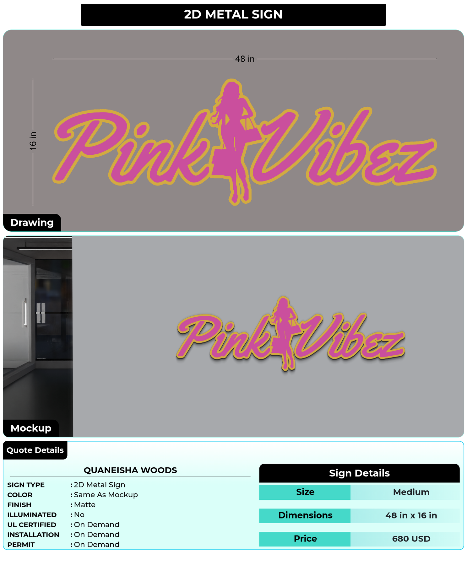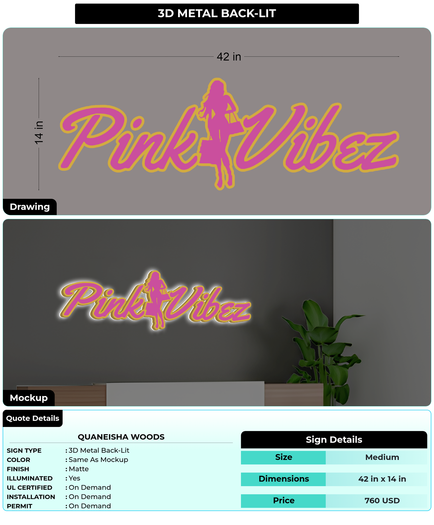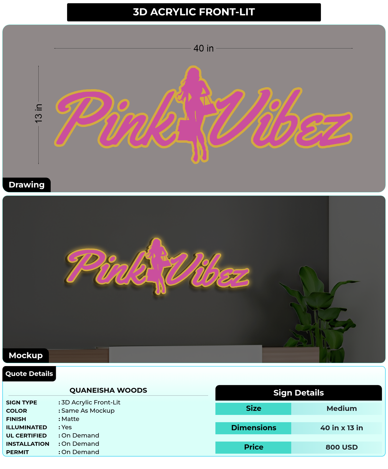 Eye-catching custom 3D sign for Quaneisha woods