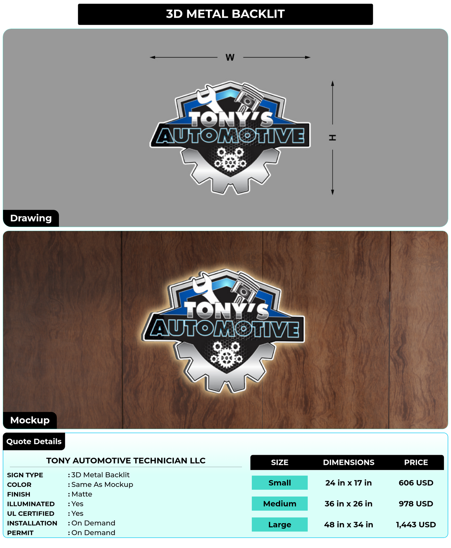 Eye-catching custom 3D sign for Tony Automotive Technician LLC