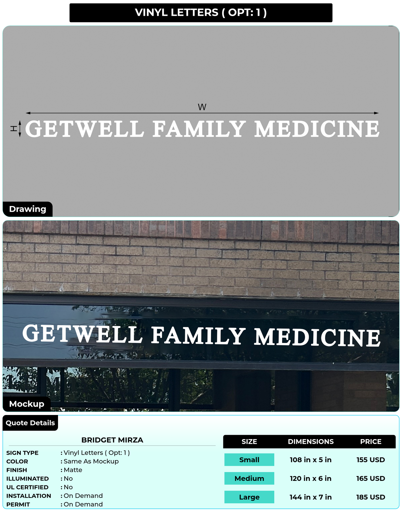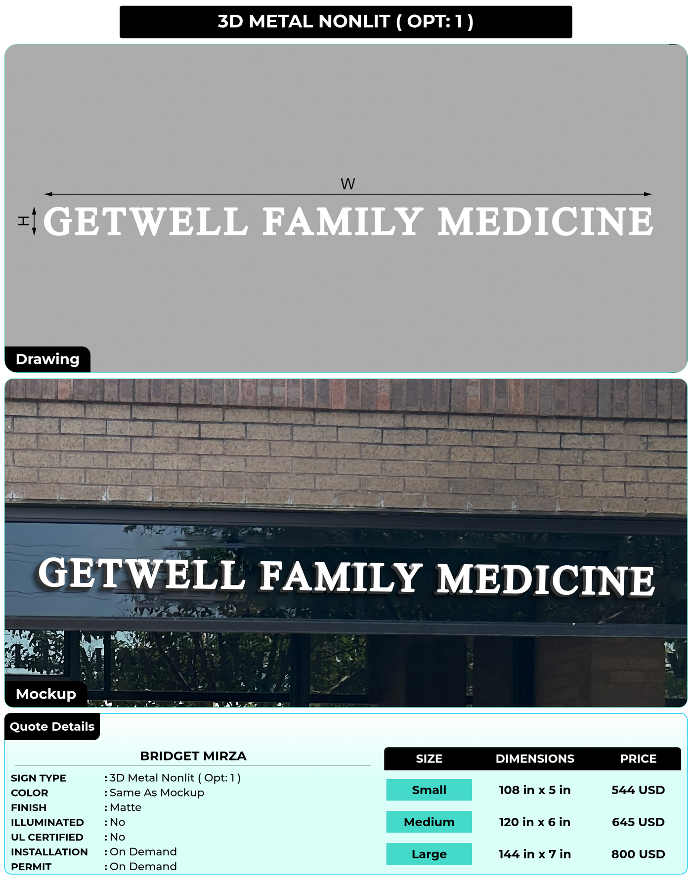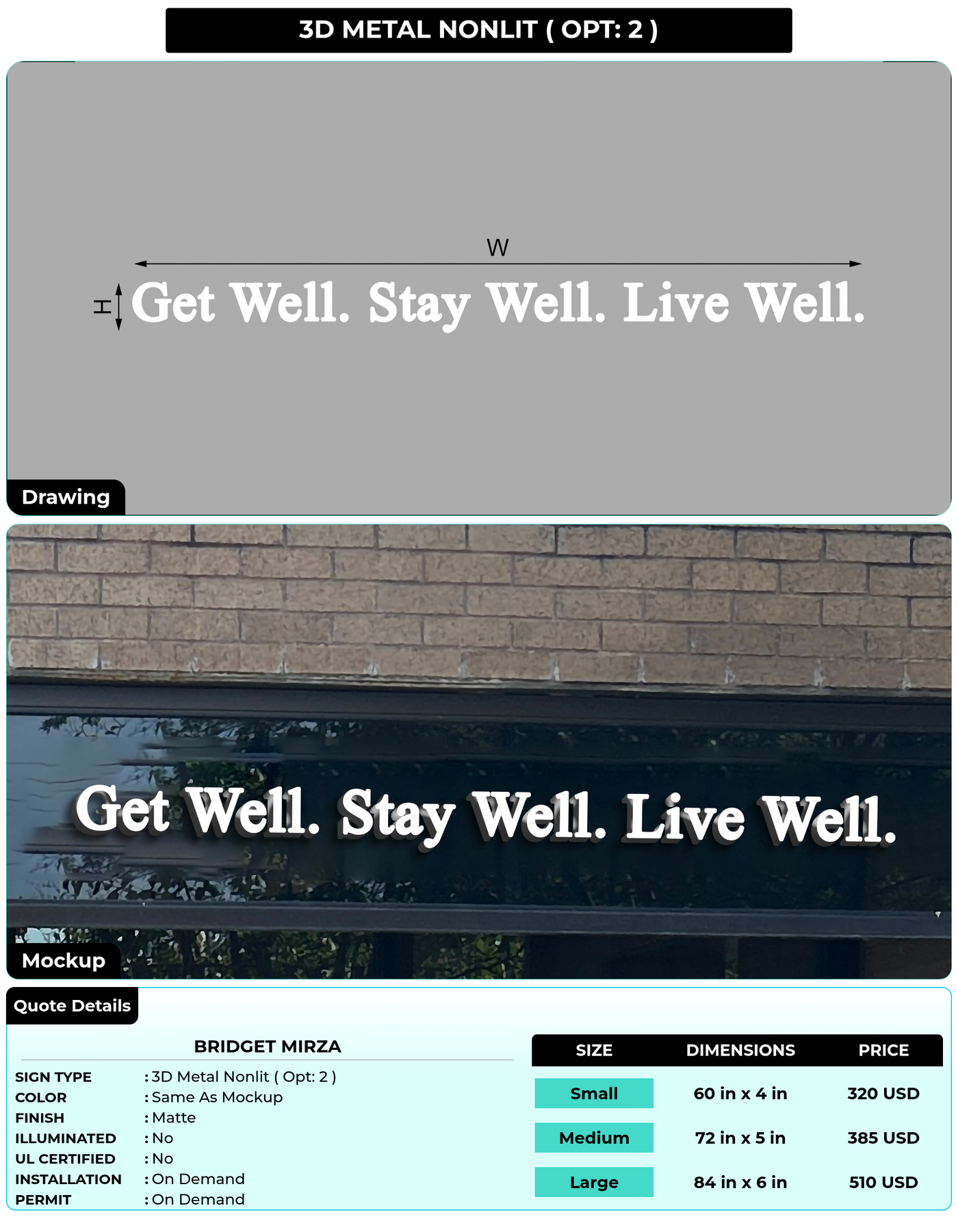 Eye-catching custom 3D sign for Bridget Mirza